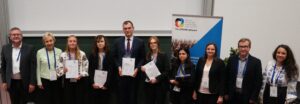 (From left to right): Prof. Matthias Epple, Dr. Denys Makarov (Head of the PhD Contest Committee), Ms Mariia Terentieva, University of Cambridge, UK (the first place), Ms Anna Tyutyunnykova, OncoRay-National Center for Radiation Research in Oncology, Dresden, Germany (the second place), Oksana Lebedivna, National University of Kyiv-Mohyla Academy/ Yuchymenko Family Doctoral School, Kyiv, Ukraine (the finalist), Vitalii Mutsenko, Institute for Multiphase Processes, Leibniz Universität Hannover, Germany (the finalist), Prof. Olga Garaschuk, Dr. Oksana Seumenicht. Dresden, 4 October 2018. Photo: courtesy of Jürgen Lösel/ Deutsch-Ukrainische Akademische Gesellschaft e.V.